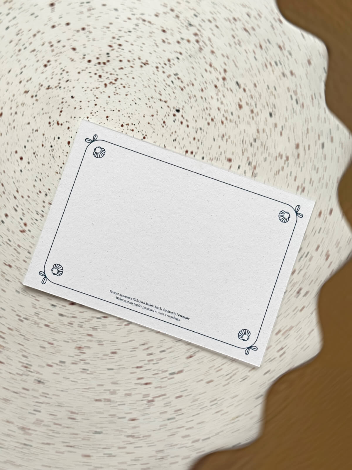 Czy wiesz, że ta kartka jest w 100% z recyklingu – z kukurydzianego papieru? To sprawia, że jest nie tylko urocza w swoim minimalizmie, ale też ekologiczna. Postaw na to – bez lakierowanych, krzykliwych kartek, które widujemy na każdym kroku. Zwłaszcza, jeśli chcesz wysłać kartkę znad morza: w końcu tak piękne otoczenie zasługuje na odzwierciedlenie w pozdrowieniach.