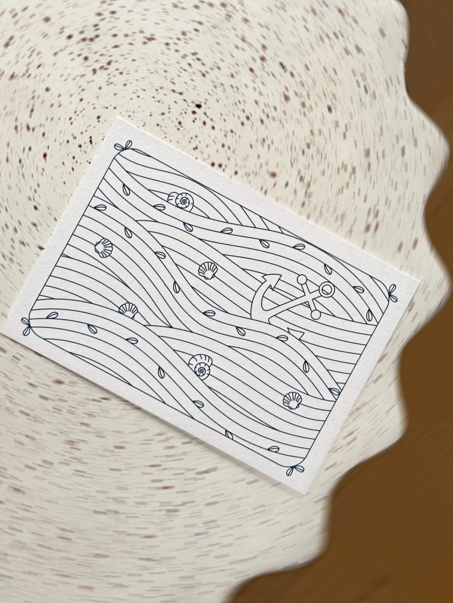 Minimalistyczna, marinistyczna ilustracja sprawdzi się jako ozdoba domu. Powieś ją nad biurkiem, opraw w ramkę, użyj jako zakładki do książki – bo ta mała kartka może dodać magii (i morza!) codzienności.