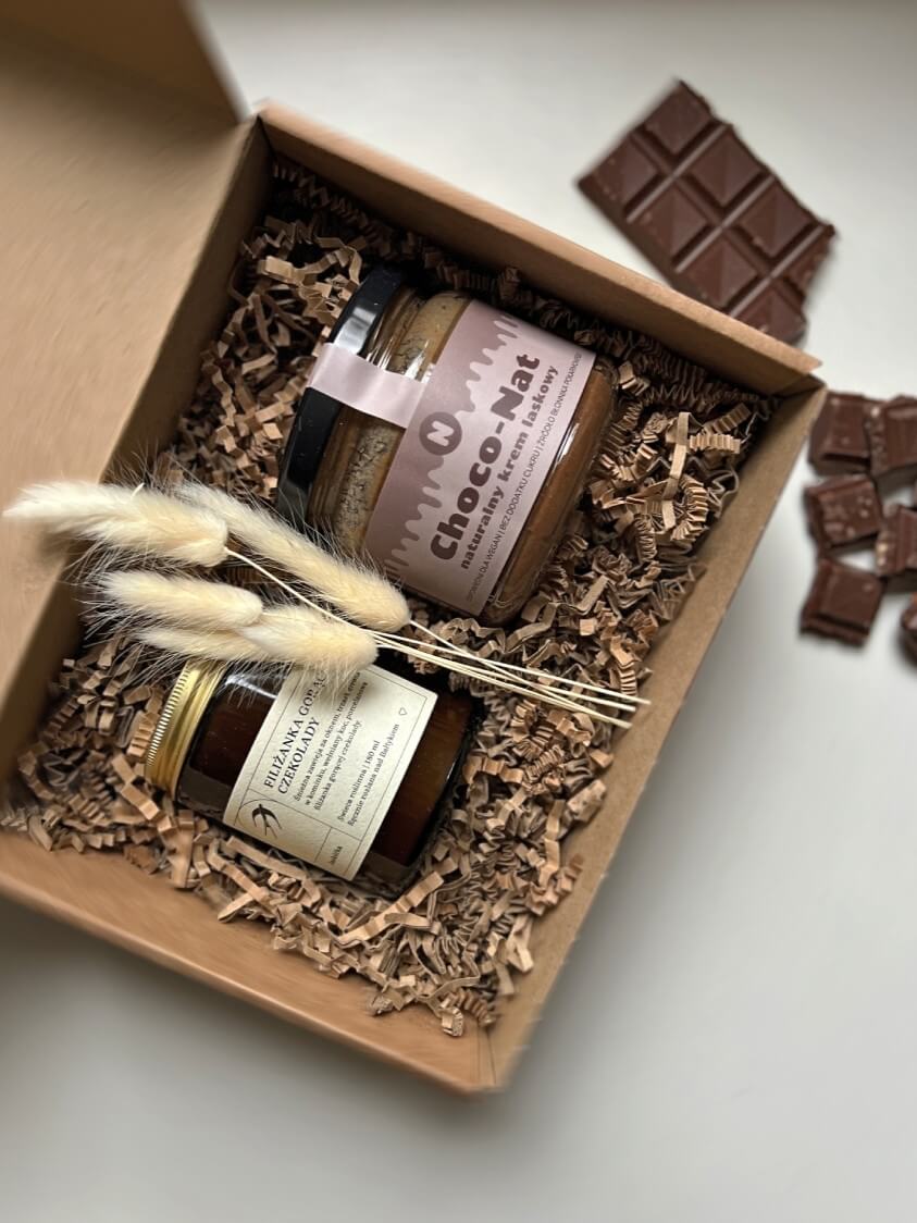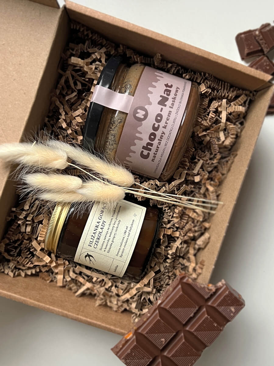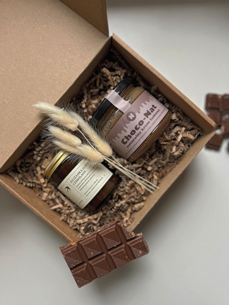 Niektórzy kochają kawę, niektórzy herbatę – inni wolą czekoladę. 🍫 Dla nich mamy prezent czekoladowy, gdzie znajdziesz ją w dwóch, zdrowszych postaciach: tej do jedzenia i tej pachnącej. Tak, każdy element chciałoby się ugryźć – ale w przypadku świecy nie rób tego! 😉