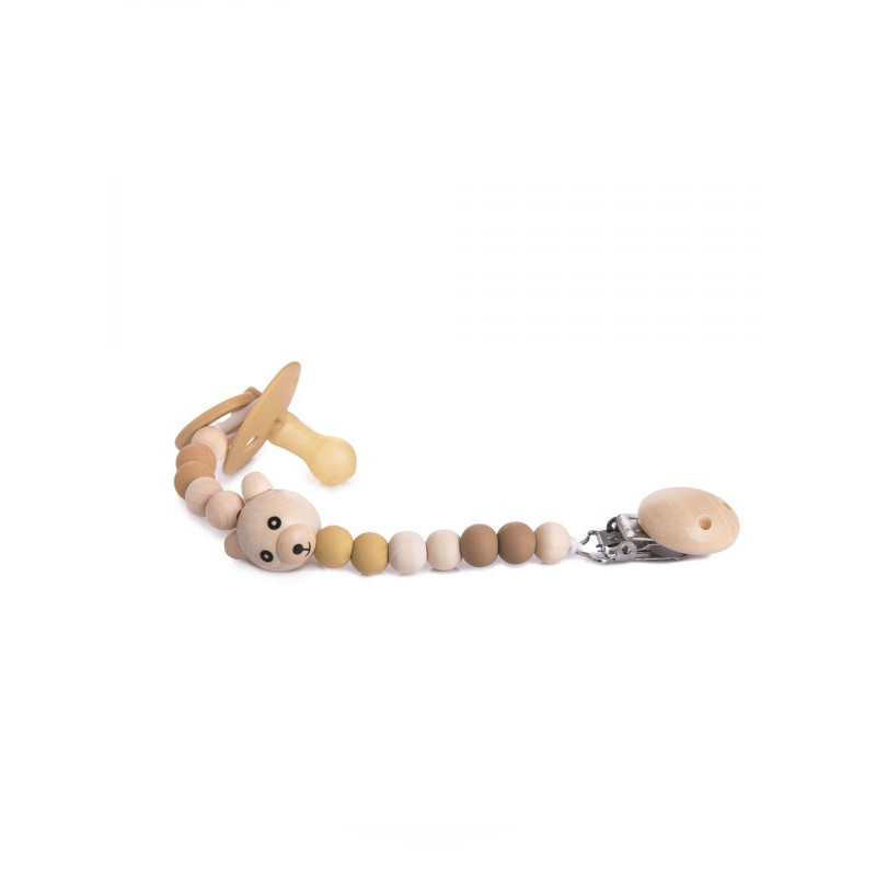 CZYSZCZENIE : Drewniane koraliki można natłuścić olejem kokosowym dla zabezpieczenia elementów przed zniszczeniem. Elementy drewniane przecieraj suchą szmatką. Silikonowe koraliki przetrzyj wilgotną szmatką. Nie używaj środków czyszczących. Nie wkładaj do zmywarki.